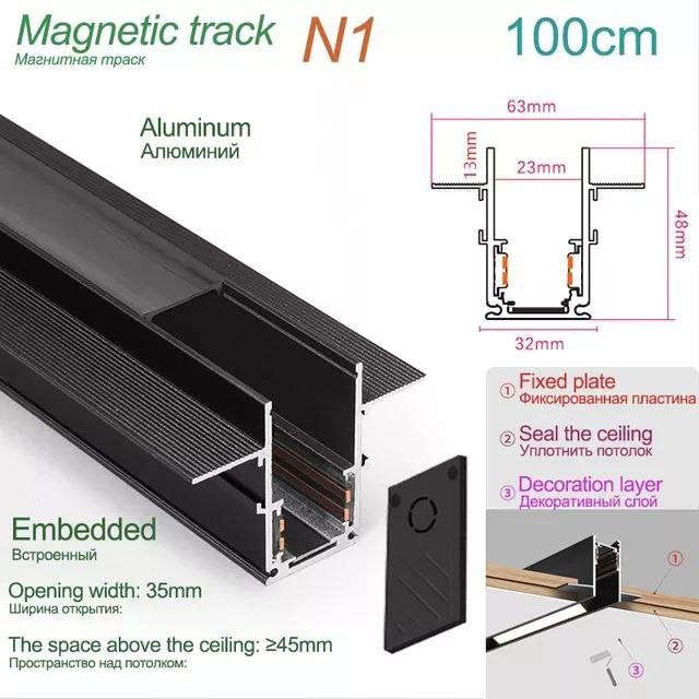 پروفیل ریل توکار شاخه سه متری مگنتی