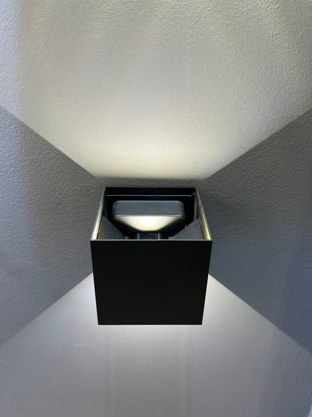 یک چراغ دیواری مدرن با نوردهی دوطرفه (بالا و پایین) که امکان تنظیم زاویه تابش نور را بهصورت مستقل در هر سمت فراهم میکند. این مدل علاوه بر روشنایی، جلوهای معماری و بسیار شیک روی دیوار ایجاد میکند.
